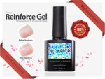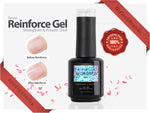 frequently then Reinforce Gel is a must! It will keep your fragile nails and manicure strong and protected from external elements. Reinforce Gel can also be used as a self levelling filler to level out uneven nails and applied multiple times to build layers on paper thin nails. It increases the longevity and lifespan of any manicure, strengthening and protecting the nails from premature lifting, splitting, cracking, chipping and more. Apply thinly.