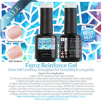 Note: Femz Reinforce Gel can be applied after you apply the Base Coat or before you apply the final Top Coat